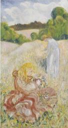 Keywords: Johannessen - Kinder (Die Kinder auf der Blumenwiese) - ca 1917.jpeg Artwork creator Aksel Waldemar Johannessen ca 1917 oil canvas cm 93 51 Private collection Oslo object history credit line accession number repro from art book Author died more than 70 years ago - public domain PD-old Paintings by Aksel Waldemar Johannessen 20th-century oil on canvas paintings of landscape in Norway Flower meadows in art Paintings of girls Genre paintings in Norway 20th-century paintings in private collections 1910s paintings in Norway |