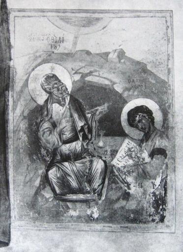 Keywords: John the Apostle and Prochorus (Georgian miniature, 1300).jpg en John the Apostle dictating to Prochorus A miniature from the Georgian manuscript of the Mokvi Gospels 1300 ამირა აშვილი შ ქართული ხელ ვ ების ისტ რია Tbilisi 1971 anonymous 1300 Source ამირა აშვილი შ ქართული ხელ ვ ების ისტ რია -თბ 1971 PD-old-100 Mokvi Gospel Miniatures of Saint John the Evangelist Prochorus Taken with Canon Digital IXUS 990 IS |