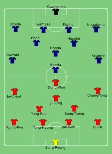 Keywords: JPN-KOR 2011-01-25.svg en Football Formation and Line-up for match Japan-South Korea of the 2011 AFC Asian Cup on 2010-01-25 Own work pitch based on image Soccer field - empty svg by user Nuno Tavares and image Empty_soccer_line-up svg by user NielsF File Empty_soccer_line-up svg Kante4 2011-01-25 20 39 UTC Cc-zero Association football line-ups |
