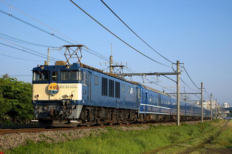 Keywords: JR East EF64-1052 Limited Express Hokuriku.jpg JR East previously JNR Class EF64-1000 electric locomotive and 14 series sleeping cars forming the Limited express Hokuriku on Takasaki Line between Kumagaya and Gyoda Stations EF64-1052牽引 14系 台客車で運転される 台特 北陸 高崎線 熊谷-行田間にて Own 2007-05-18 Sui-setz Hokuriku train Trains of Tōhoku Main Line Hokuriku Trains of Takasaki Line Hokuriku Trains of Jōetsu Line Hokuriku Trains of Shin'etsu Main Line Hokuriku Trains of Hokuriku Main Line Hokuriku EF64 1000 JNR 14 series passenger cars |