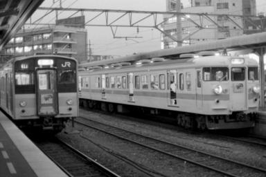 Keywords: JR Shikoku 111 and 121 series at Takamatsu.JPG en JR Shikoku 111 series and 121 series at Takamatsu station ja 高 駅に 車する111系と121系 1988-03-16 own Hahifuheho other versions cc-zero JNR 121 JNR 113 JR Shikoku Trains at Takamatsu Station Kagawa 1988 in rail transport in Japan Black and white photographs of Japan in the 1980s Black and white photographs of trains in Japan 1988 in Kagawa prefecture Photographs taken on 1988-03-16 |
