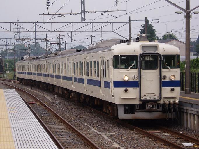 Keywords: JRE-EC-415-K508.JPG East Japan Railway Company EMU Type 415 Mito Line at Tomobe Sta Photo by Cassiopeia_sweet 2005-07-21 Cassiopeia_sweet JNR 415 JR East