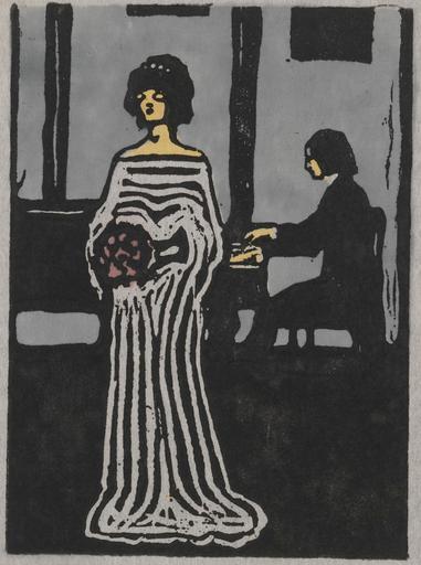 Keywords: Kandinsky, Sängerin.jpg fr Titre Chanteur Sängerin Médium Xylogravure sur papier japonais montée sur papier Dimensions image 20 × 14 6 cm ; feuille 27 × 19 1 cm ; cadre 35 9 × 24 8 cm en Title Singer Sängerin Medium Woodcut on Japanese paper mounted on paper Size image 20 × 14 6 cm; sheet 27 × 19 1 cm; cadre 35 9 × 24 8 cm 1903 http //blogs guggenheim org/checklist/kandinskys-early-representational-woodcuts/ Creator Wassily Kandinsky other versions PD-Art Uploaded with UploadWizard Woodcuts by Wassily Kandinsky |