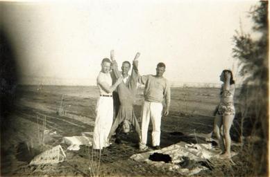 Keywords: karle criss special collection photo outdoor Catalog #: 09_00806 Title: Karle Criss Special Collection Photo Additional Information: Three men holding one man upside down and one woman standing on a beach, Karle Criss was a member of the 4th Observation Squad in Hawaii, Tags: Karle Criss Special Collection Photo Repository: San Diego Air and Space Museum Archive Catalog #: 09_00806 Title: Karle Criss Special Collection Photo Additional Information: Three men holding one man upside down and one woman standing on a beach, Karle Criss was a member of the 4th Observation Squad in Hawaii, Tags: Karle Criss Special Collection Photo Repository: San Diego Air and Space Museum Archive |
