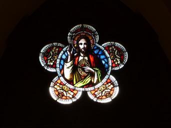 Keywords: Katholische Kirche Otterstadt 03.jpg en Churches in Otterstadt own Immanuel Giel 2011-04-23 Cc-zero Mariä Himmelfahrt Otterstadt Sacred Heart of Jesus Christ on stained glass windows