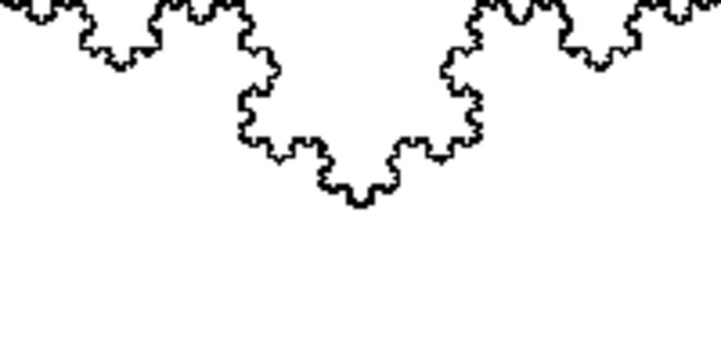 Keywords: Kochsim.gif About this image I made this animation Cuddlyable3 15 36 13 March 2007 UTC The Koch curve in its fully infinitely iterated form is not a line that anyone has ever seen That is to say it is not like any of the lines that we are familiar with in Euclidean geometry because it somehow spans a finite distance while being infinitely long The cross-section of an ordinary 2-D line is a point but the cross-section of the Koch curve would have to be a probability distribution That makes displaying the Koch curve challenging and we may need to rethink what we mean by aliasing error The quantising imposed to make this animation is Resolution 200 x 100 pixels Colours Just 2 i e monochrome Time 10 frames that recycle at 10 frames/second Each of the above is a potential source of aliasing error but I think the dominant cause of comments about this is the restricted colour scale Any pixel that the Koch distribution touches no matter how slightly is painted black It is that simple Other details of this animation the line actually drawn is first described numerically by 4097 points i e a it is a highly developed but not infinite Koch curve This model exceeds the display resolution so much that I am sure that further Koch iteration would make no difference the points are joined in order by the Bresenham line-drawing algorithm At this scale I think I would have got exactly the same result by merely plotting the points because there is no line span long enough for the B algorithm to paint intermediate points but now you know what I told the computer to do the animation was assembled using The Gimp software into a gif file of only 4 331 bytes Finally I judiciously panned the view of the sequence so the last frame smoothly recycles to the first frame i e the center of the curve seems to remain still Although that gives a nice subjective effect it may encourage a misinterpretation that forms are being emitted from the center What you see is really just a zoom and pan view of a strange but static self-similar object Cuddlyable3 19 14 7 May 2007 UTC I got rid of the deprecated tag and I'll add this tag Plus nominated for featured Temperal<span style color red ><small><sup>xy</sup></small></span> 19 12 6 May 2007 UTC See my Discussion page for some variations of this animation Cuddlyable3 19 07 2 June 2007 UTC Koch curves Animations of Fractal zoom |