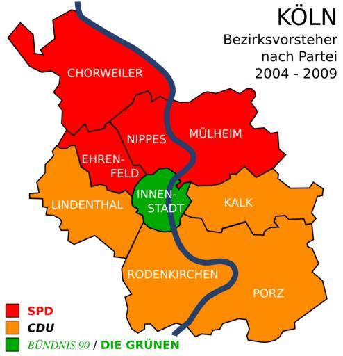 Keywords: Koeln-bezirksvorsteher2004.svg en party of the district mayors of the 9 city districts of Cologne from 2004 through 2009 de Parteizugehörigkeit der Bezirksvorsteher Bezirksbürgermeister der 9 Stadtbezirke von Köln 2004 - 2009 Own Vinom 2009-01-06 own work Politics of Cologne Local elections in North Rhine-Westphalia 2004 |