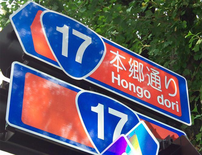 Keywords: Kokudo17GoHongoDori.jpg Road sign for National Route 17 Japan Hongo Dori Bunkyo Tokyo Japan 2005-10-10 own Fg2 Bunkyo Tokyo Route 17 Japan Japan national highway shields Road signs in Japan Street signs in Japan Road junction signs in Japan |