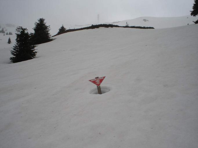 Keywords: Kop mine mines.jpg MINES warning sign about NATO cluster bombs near ski slopes Picture taken in spring 2006 CrniBombarder Kopaonik 1999 NATO bombing of Yugoslavia Cluster bombs
