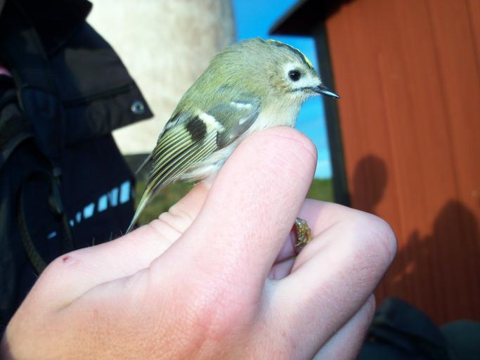 Keywords: Landsort2011 059.JPG sv En kungsfågel Regulus regulus ringmärkt vid Landsorts fyr på Landsorts södra udde på ön Öja syd om Nynäshamn i Södermanland i Stockholms län i Sverige Denna ringmärkning utförs av Landsorts fågelstation en A Goldcrest Regulus regulus ringed at Landsort Lighthouse on the south cape of the island Öja Landsort south of Nynäshamn in Södermanland in Stockholm County in Sweden Landsort Bird Observatory is responsible for the ringing 2010-10-08 own Calandrella cc-zero Uploaded with UploadWizard Human hands holding birds Regulus regulus Birdcatching Bird migration Passeriformes in Sweden |