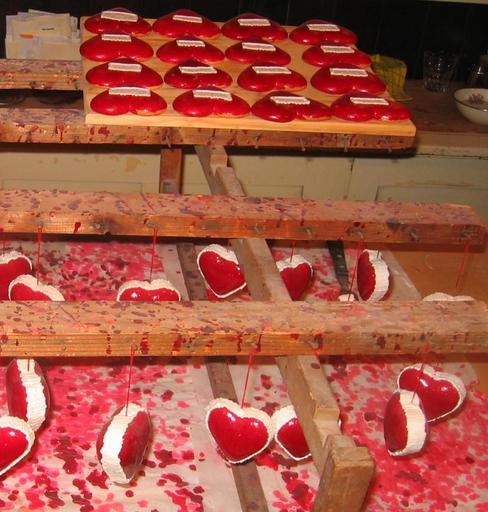 Keywords: Lect2.JPG Lect manufacture similar to gingerbread in Radovljica Slovenia sweets for decoration - after few days not edible photo Ziga 09 25 26 February 2007 UTC 2007-02-26 own assumed Žiga Heart-shaped cookies Confectionery of Slovenia Red and white food |