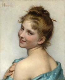 Keywords: Léon Perrault - A Young Beauty.jpg Artwork Creator Léon Perrault Oil on Canvas Size cm 38 1 46 3 private collection object history Mr George Lovell New York circa 1920s<br /> Bequeathed to Anna Kent Stoll<br /> Bequeathed to Lillian Cook Knuttel Madison Wisconsin her daughter 1973<br /> By descent to the present owner her son exhibition history credit line place of creation -L-Perrault- upper left signature http //www sothebys com/en/auctions/ecatalogue/2008/19th-century-european-art-including-the-orientalist-sale-n08431/lot 26 html Sothebys com http //www sothebys com/content/dam/stb/lots/N08/N08431/N08431-26-lr-1 jpg direct link accession number PD-old-auto-1923 1908 Women smiling in art Oil portraits of women Females with turquoise dresses in art Women facing left and looking at viewer in art Léon Perrault Images from Sotheby's |