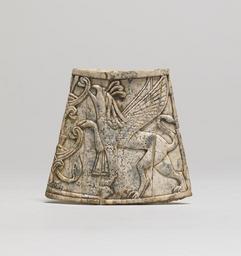Keywords: Levantine - Winged Griffin Nibbling on Sacred Tree - Walters 711171.jpg This Phoenician-style plaque shows a griffin a creature with a lion's body falcon's head and wings nibbling on a sacred tree The griffin rests one forepaw on a papyrus blossom and the other on a branch of the tree The sacred tree may be associated with agricultural abundance and nourishment century 8 7 BC Neo-Assyrian carved ivory cm 5 5 6 1 1 accession number 71 1171 10770 British School of Archaeology Iraq by excavation at Fort Shalmanesat Room S W 37 at Nimrud Excavation No N D 10650 Walters Art Museum September 1983 by exchange Museum acquisition by exchange with British School of Archaeology in Iraq 1983 place of origin Norway Walters Art Museum license Ancient Near East art in the Walters Art Museum Ancient Levant art Reliefs of griffins Media contributed by the Walters Art Museum needs category review |