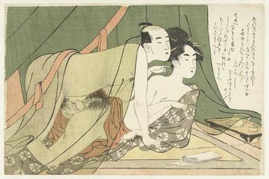 Keywords: Liefdespaar onder muskietennet-Rijksmuseum RP-P-2007-236.jpeg accession number RP-P-2007-236 Chôkyôsai Eiri credit line GWToolset Rijksmuseum nl Man en vrouw kijkend naar rechts vanonder een groen muskietennet bedrijven de liefde Rookgerei en tissues op de vloer Label Line Chôkyôsai Eiri ca 1789 - ca 1801 kleurenhoutsnede; lijnblok in zwart met kleurblokken Collection prenten; Japan collectie en Man and woman looking to the right from under green mosquito net making love Smoking paraphernalia and tissues on the floor blad Height mm 256 blad Width mm 388 exhibition history 2008-2008 Kunst op papier Rijksmuseum Amsterdam Amsterdam 2007-2007 Zomertentoonstelling 2007 CODA Cultuur onder Dak Apeldoorn Apeldoorn Institution Rijksmuseum paper object history object type prent PD-US PD-old Data and photography rights All data and all images made available through the API are either in the public domain or are subject to a CC0 license https //www rijksmuseum nl/en/api/terms-and-conditions-of-use cc-zero place of creation Japan http //www rijksmuseum nl/collectie/RP-P-2007-236 http //hdl handle net/10934/RM0001 COLLECT 440923 handle Liefdespaar onder muskietennet Uploaded with GWToolset Rijksmuseum RP-P-2007-236 http //www rijksmuseum nl/media/assets/RP-P-2007-236 Images uploaded by Fæ Japanese 18th-century prints in the Rijksmuseum Amsterdam Images from the Rijksmuseum Japanese 19th-century prints in the Rijksmuseum Amsterdam Heterosexual sex in art |