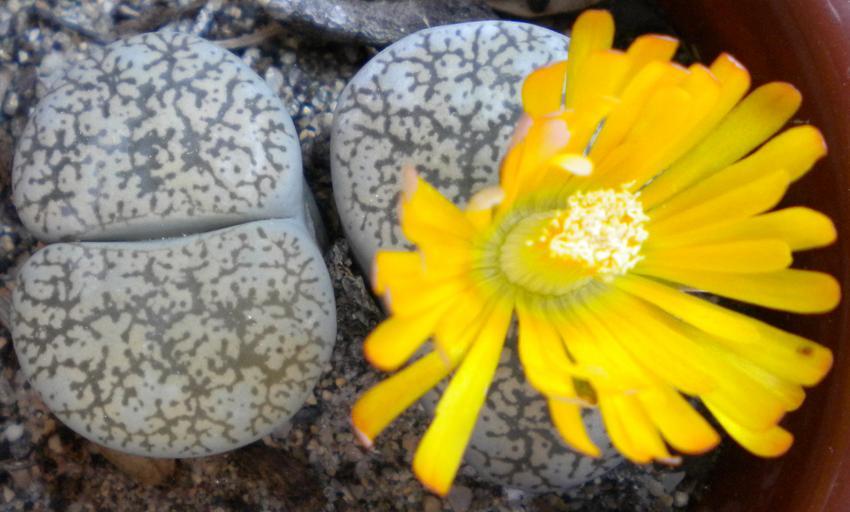Keywords: lithops bella Κάκτοι χωρίς αγκάθια που μοιάζουν με πέτρες. Aνθίζουν στο Β. ημισφαίριο φθινόπωρο και τα λουλούδια τους, αν και κρατάν πολλές μέρες, είναι ανοιχτά μόνο για μια-δυο ώρες νωρίς το απόγεμα. Κατάγονται από την Ν. Αφρική. Εδώ φαίνεται και ένα που δεν έχει ανθίσει ακόμα Κάκτοι χωρίς αγκάθια που μοιάζουν με πέτρες. Aνθίζουν στο Β. ημισφαίριο φθινόπωρο και τα λουλούδια τους, αν και κρατάν πολλές μέρες, είναι ανοιχτά μόνο για μια-δυο ώρες νωρίς το απόγεμα. Κατάγονται από την Ν. Αφρική. Εδώ φαίνεται και ένα που δεν έχει ανθίσει ακόμα |