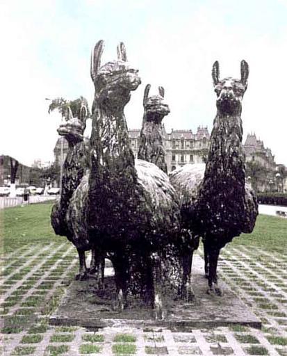 Keywords: LLAMAS.jpg photo of a monument in Lima 2006-03-02 own assumed Monica Guerrero~commonswiki Statues in Lima Llamas in art Statues of animals in Peru