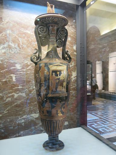 Keywords: Loutrophore apulienne à figures rouges (Louvre, K 77).jpg loutrophoros with red figurs A loutrophoros carry bathwater was a distinctive type of Greek pottery vessel characterized by an elongated neck with two handles The loutrophoros was used to hold water during marriage and funeral rituals Circa 340 - 330 BC Tarente Apulia Italy Buy collection Piot 1876 Louvre museum Paris France MNB 1148 K 77 Loutrophore apulienne à figures rouges Une loutrophore porte bains était un type particulier de vase grec caractérisé par un long col et deux anses Il était utilisé pour transporter l'eau pour les cérémonies de mariages ou funèbres Vers 340 - 330 av J -C Tarente Apulie Italie Achat collection Piot 1876 Musée du Louvre MNB 1148 K 77 sf 2015-12-16 Tangopaso MNB 1148 K 77 Greek antiquities in the Louvre - Room 9 Loutrophoroi Ancient Greek pottery in the Louvre 340s BC pottery in France |