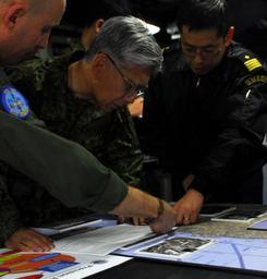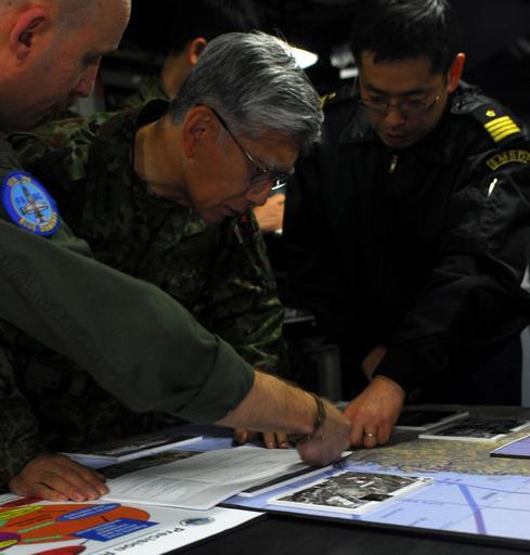 Keywords: Lt. Gen. Eiji Kimizuka on board USS Ronald Reagan -31 Mar. 2011 a.jpg PACIFIC OCEAN March 31 2011 - Lt Gen Eiji Kimizuka commanding general of Joint Task Force Touhoku views imagery of area effected by Japan's earthquake and subsequent tsunami in the Carrier Air Wing Intelligence Center aboard the aircraft carrier USS Ronald Reagan CVN 76 Kimizuka visited Ronald Reagan to tour operations supporting Japan's earthquake and tsunami relief efforts Ronald Reagan is off the coast of Japan to provide disaster relief and humanitarian assistance to Japan as directed in support of Operation Tomodachi U S Navy Photo by Mass Communication Specialist 3rd Class Dylan McCord <div style font-size 92 >cropped from</div> 110331-N-SB673-094 Navy http //www flickr com/photos/us7thfleet/5578647129/in/photostream <div style font-size 84 >ă ”Uploaded to Flickr by http //www flickr com/people/us7thfleet/ Commander U S 7th Fleetă •</div> 2011-03-31 Dylan McCord U S Navy 110px PD-USGov-Military-Navy 2011 TĹŤhoku earthquake relief by the JSDF Operation Tomodachi in March 2011 Eiji Kimizuka People of the JMSDF Guests aboard USS Ronald Reagan CVN-76 Taken with Nikon D200 |