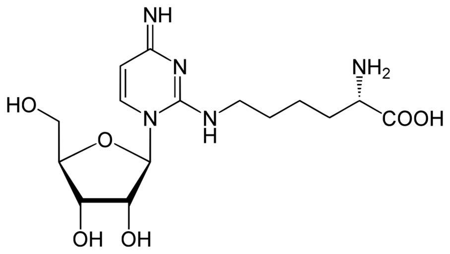 Keywords: Lysidine.svg en Lysidine; 2-lysyl-cytidine; k2C; L de Lysidin own ; PMID 17173027 Yikrazuul 2010-04-23 Nucleosides Pyrimidines