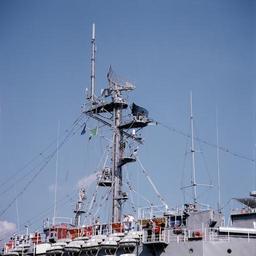 Keywords: Main mast of USS Spiegel Grove (LSD-32) in 1988.jpeg A view of the main mast and antenna rigging aboard the U S Navy dock landing ship USS Spiegel Grove LSD-32 during an open house at Baltimore Maryland USA in 1988 The Thomaston-class dock landing ships were the last active U S Navy ships equipped with the AN/SPS-6 radar 6442896 1988-10-09 W Greg Hendrix USN PD-USGov USS Spiegel Grove LSD-32 AN/SPS-6 AN/SPS-10 |