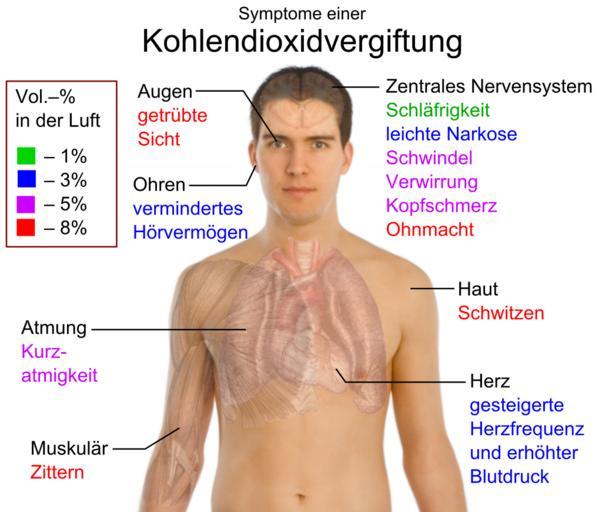 Keywords: Main symptoms of carbon dioxide toxicity DE.svg Symptome einer Kohlendioxidvergiftung siehe auch Wikipedia de Kohlenstoffdioxid Physiologische_Wirkungen_und_Gefahren Quellenangaben http //www inspect-ny com/hazmat/CO2gashaz htm Toxicity of Carbon Dioxide Gas Exposure CO<SUB>2</SUB> Poisoning Symptoms Carbon Dioxide Exposure Limits and Links to Toxic Gas Testing Procedures By Daniel Friedman “ InspectAPedia Davidson Clive 7 February 2003 Marine Notice Carbon Dioxide Health Hazard Australian Maritime Safety Authority Model Mikael Häggström To discuss image please see Template talk Häggström diagrams à bersetzung einer Arbeit von Mikael Häggström Translation of a work by Mikael Häggström Sponk <span class signature-talk >talk</span> translated by Linksfuss 2010-03-14 File Main symptoms of carbon dioxide toxicity svg original version in English Physiological effects |