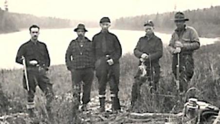 Keywords: MaineHuntingParty1941.png en Maine Allagash wilderness hunting party on Umsaskis Lake in the autumn of 1941 Dave Jackson 1902-1978 on the right is holding a self loading Model 10 Winchester rifle chambered for the 401 Winchester Self-Loading cartridge Albert Wellman 1880-1957 in the center is holding a lever-action Model 94 Winchester rifle chambered for the 30-30 Winchester cartridge Albert Wellman Jr 1911-1972 on the left is holding a bolt-action National Match M1903 Springfield rifle chambered for the 30-06 Springfield cartridge old family photo Albert Wellman 1941-11-00 cc-zero Allagash Maine Maine in the 1940s Hunting in the United States |