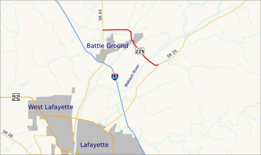 Keywords: Map of Indiana State Road 225.svg This is a map which shows the route of Indiana State Road 225 in the United States My own work using freely-available shape data and custom-written MapScript applications 2008-03-16 Omnedon Road maps of Indiana SR225 |