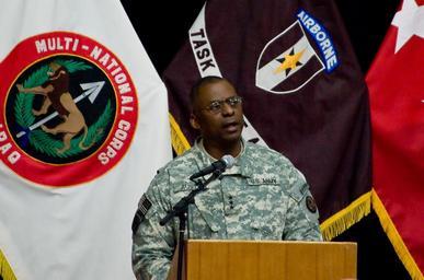 Keywords: Martin Luther King Jr. Service in Baghdad DVIDS145657.jpg en Lt Gen Lloyd J Austin III commanding general Multi-National Corps - Iraq offers heartfelt words Jan 19 at Al Faw Palace on the U S 's vast civil rights accomplishments due in a large part to Martin Luther King Jr during a ceremony commemorating his work 2009-01-19 Lee Craker https //www dvidshub net/image/145657 145657 2009-01-19 16 52 BAGHDAD IQ PD-USGov Lloyd Austin Al-Faw Palace Images from DoD uploaded by Fæ |