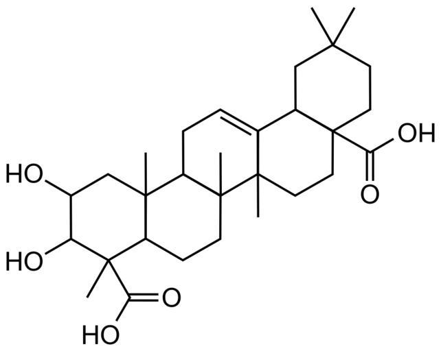 Keywords: Medicagenic Acid.svg en The chemical structure of medicagenic acid a saponin derived from Medicago species own Ninjatacoshell 2010-08-04 Saponines Medicago