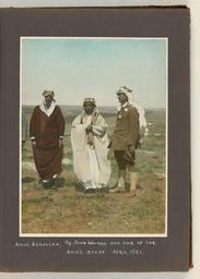 Keywords: Meetings of British, Arab, and Bedouin officials in Amman, Jordan, April 1921 - File 03.tif en Photographs show meetings between Arab Bedouin and British officials around April 17-27 1921 at Amir Abdullah ibn Hussein's camp at Amman Jordan During these meetings British High Commissioner Herbert Samuel proclaimed Amir Abdullah as the ruler of Transjordan under British protection Among the persons depicted are Amir Abdullah John D Whiting possibly Sheik Sultan of the Belka Sultan ibn 'Ali id Diab ul 'Adwan Amir Shaker bin Zeid future Regent of Transjordan Bedouin chief Auda Abu Tayi Sheik Majid Pasha el Adwan Herbert Samuel British civil administrator Wyndham Deedes British diplomat Albert Abramson T E Lawrence Lawrence of Arabia and possibly Iraq civil administrator Gertrude Bell Also shown are horse racing an airplane landing at Abdullah's camp Circassian leaders Abudullah's bodyguard on camels and Herbert Samuel reading his proclamation of Abdullah as leader of Transjordan Reproduction Number LC-DIG-ppmsca-15304 digital files of original photos LC-DIG-ppmsca-15305 digital files of album pages Rights Advisory No known restrictions on publication Access Advisory For reference access please use the digital images in the online catalog to preserve the fragile original items Notes Photographs were created by the photographers of the American Colony Photo Department located in Jerusalem Founded in the late 1890s by Elijah Meyers the photo agency was headed during its heyday ca 1903-1933 by Lewis Larsson whose staff photographers included Erik Lind Lars Lind Furman Baldwin and G Eric Matson It transitioned into the Matson Photo Service around 1940 with photography by Matson Hanna Safieh Joseph H Giries and others John D Whiting contributed periodically to the work of both agencies The images in this album were probably taken by Lewis Larsson and/or Eric Matson For more information see http //hdl loc gov/loc pnp/pp matpc and http //www loc gov/rr/print/coll/629_whiting html Some caption information for these photographs based on information from matching negatives in the G Eric and Edith Matson Photograph Collection LC-M32-1942 LC-M32-1952 LC-M32-1951 LC-M32-1954 LC-M32-1956 M32-1957 and LC-M32-50280-x Album unpaginated album page numbers supplied by Library staff Pages 1-2 and verso of each page are blank One unattached photograph was found with the album and is stored with it Photograph is a portrait of a Jordanian man in traditional dress Blind stamp Hagop Berberian Amman Stamped on verso Copyright reserved By appointment to H M the King photographers Hagop Berberian Son More information about the events and people depicted in the album are available in the John D Whiting Supplementary Archive Box 1 LOT title devised by Library staff John D Whiting's diaries correspondence and other materials are located in the Library of Congress Manuscript Division Papers of John D Whiting Forms part of Visual materials from the papers of John D Whiting Library of Congress Transfer; Manuscript Division; 2006; DLC/PP-2006 051 29 Subjects Samuel Herbert Louis Samuel --Viscount --1870-1963 Lawrence T E -- Thomas Edward --1888-1935 Abdullah --King of Jordan --1882-1951 Deedes Wyndham Henry --Sir --1883-1956 Shākir ibn Zayd --Prince son of Zayd ibn Fawwāz Amir of Ṭāʾif --1885-1934 Bell Gertrude Lowthian --1868-1926 Jordan--History--1919-1946 American Colony Jerusalem --People--1920-1930 British--Jordan--Amman--1920-1930 Arabs--Jordan--Amman--1920-1930 Bedouins--Jordan--Amman--1920-1930 Circassians--Jordan--Amman--1920-1930 Tribal chiefs--Jordan--Amman--1920-1930 Meetings--Jordan--Amman--1920-1930 Camps--Jordan--Amman--1920-1930 Government officials--Jordan--Amman--1920-1930 Biplanes--Jordan--Amman--1920-1930 Proclamations--Jordan--Amman--1920-1930 April 17-27 1921 http //www loc gov/pictures/item/mpc2010001545/PP/resource/ Whiting John D John David 1882-1951 photographer Larsson Lewis photographer Matson G Eric Gästgifvar Eric 1888-1977 photographer other versions Wikimedia Levant - GLAM PD-Jordan 1921 Herbert Samuel and Amir Abdullah meetings |