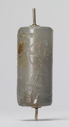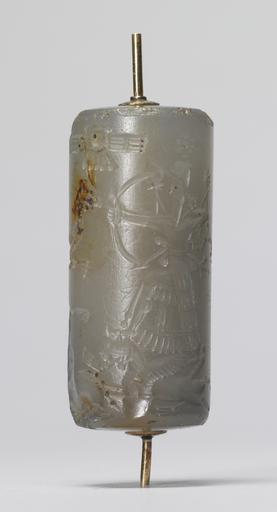 Keywords: Mesopotamian - Cylinder Seal with Archer and Winged Lion - Walters 421195 - Side C.jpg A worshiper faces a deity standing on a griffin and aiming his bow and arrow at an upright winged lion-demon The winged disk of Ashur the patron god of Assyria appears above The three-line inscription gives the name of the owner Assyrians enjoyed the translucent and vibrant colors of semiprecious stones such as chalcedony between 900 700 BC Neo-Assyrian carved chalcedony gold cm 6 6 2 1 h x diam accession number 42 1195 34654 Mrs Henry Walters New York Sale Joseph Brummer New York 1941 Walters Art Museum 1942 by purchase Museum purchase 1942 Inscription place of origin Mesopotamia Walters Art Museum license Cylinder seals in the Walters Art Museum Art of Mesopotamia in the Walters Art Museum Media contributed by the Walters Art Museum needs category review |