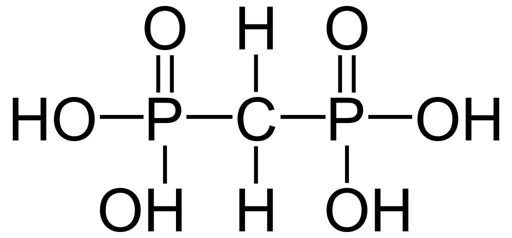 Keywords: Methylendiphosphonsäure2.svg Struktur von Methylendiphosphonsäure MDP en Structure of methylene diphosphonic acid MDP own 2007-01-12 NEUROtiker Bisphosphonates