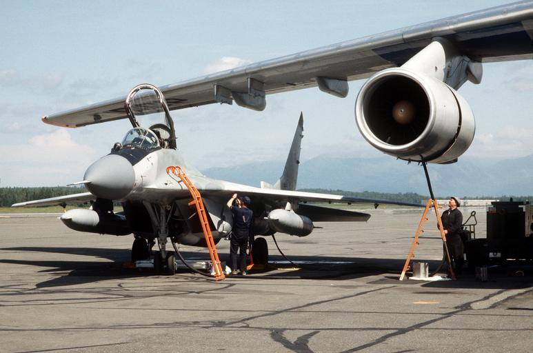 Keywords: MiG-29 refuelling.jpg A Soviet technician works on a MiG-29A Fulcrum aircraft as it receives fuel from an IL-76MD Candid-B aircraft The aircraft has stopped at the base while en route to an air show in Canada Location ELMENDORF AIR FORCE BASE ALASKA AK UNITED STATES OF AMERICA USA DF-ST-91-11251 Air Force http //www defenseimagery mil/imagery html guid 1624645914186c33656eb2849fd5e364774b99ab http //www dodmedia osd mil/Assets/1991/Air_Force/DF-ST-91-11251 JPEG 1990 SGT Greg Suhay PD-USGOV-MILITARY-AIR FORCE PD-USGov-Military-Air Force CC0 Original upload log page en wikipedia MiG-29_refuelling jpg 2006-07-05 04 26 Victor12 2870×1900× 2313237 bytes <nowiki>A Soviet technician works on a MiG-29A Fulcrum aircraft as it receives fuel from an IL-76MD Candid-B aircraft The aircraft has stopped at the base while en route to an air show in Canada Location ELMENDORF AIR FORCE BASE ALASKA AK UNITED STATES OF </nowiki> MiG-29 in Soviet service Aircraft at Elmendorf Air Force Base Aircraft fueling CCCP-78791 aircraft Ladders Ladders with aircraft |