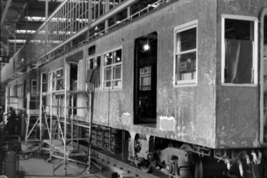 Keywords: Modifying Nishitetsu 2000.jpg en A Nishitetsu 2000 rolling stock being modified to add another door ja 3扉改 中の西鉄2000 1989-08-02 own Hahifuheho other versions cc-zero Nishitetsu 2000 series Black and white photographs of trains in Japan 1989 in rail transport in Japan |