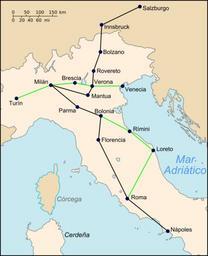 Keywords: Mozart in Italy es.svg es Mapa con los principales centros visitados durante el primer viaje a Italia de diciembre de 1769 a marzo de 1771 La línea negra muestra la ruta de salida de Salzburgo a Nápoles La línea verde muestra otras rutas adicionales hechas durante el primer viaje Translated image from File Mozart in Italy svg Té y kriptonita 2009-05 w File MozartItalyMap2 jpg SVG maps of Italy Wolfgang Amadeus Mozart |
