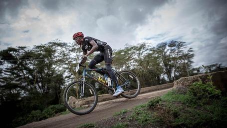 Keywords: vehicle bike outdoor sport KENYA, Naro Moru: In a photograph taken by Make It Kenya 21 Novemebr 2015, a rider races in the Mt Kenya Epik cycling challenge in Naro Moru Nyeri County approx. 220km north of the Kenyan capital Nairobi. The cycling challenge, taking place between 21-24 November, will see over 30 cyclists both local and international professionals cover more than 300km through central Kenya. David Kinjah, Epik founder and training partner to two-time Tour-De France champion Chris Froome, hopes the event creates awareness of conservation projects around the Mt. Kenya region, which address the issues arising as a result of human-wildlife conflict and management of natural resources, particularly in water catchment areas. Kinjah who recently came back from the Cairo-Cape cycling challenge said that the Epik is a good opportunity to further engage the youth of the country and provide them with a platform to be involved in something worthwhile. "Kenyan cycling is still at the grassroots level and that's a good thing," Kinjah said adding that young cyclists come from rural areas and are enthusiastic about a sport that looks to have a bright future in the East AFrican country. MANDATORY CREDIT: MAKE IT KENYA PHOTO / STUART PRICE. KENYA, Naro Moru: In a photograph taken by Make It Kenya 21 Novemebr 2015, a rider races in the Mt Kenya Epik cycling challenge in Naro Moru Nyeri County approx. 220km north of the Kenyan capital Nairobi. The cycling challenge, taking place between 21-24 November, will see over 30 cyclists both local and international professionals cover more than 300km through central Kenya. David Kinjah, Epik founder and training partner to two-time Tour-De France champion Chris Froome, hopes the event creates awareness of conservation projects around the Mt. Kenya region, which address the issues arising as a result of human-wildlife conflict and management of natural resources, particularly in water catchment areas. Kinjah who recently came back from the Cairo-Cape cycling challenge said that the Epik is a good opportunity to further engage the youth of the country and provide them with a platform to be involved in something worthwhile. "Kenyan cycling is still at the grassroots level and that's a good thing," Kinjah said adding that young cyclists come from rural areas and are enthusiastic about a sport that looks to have a bright future in the East AFrican country. MANDATORY CREDIT: MAKE IT KENYA PHOTO / STUART PRICE.