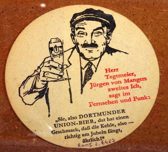 Keywords: Musée Européen de la Bière, Beer coaster pic-048.JPG Dortmunder Union Bier Photographed through glass own 2012-08-16 16 14 34 AlfvanBeem CC-zero Trademarked Musée Européen de la Bière Nostalgia by Alf van Beem Beermats Dortmunder style beer |
