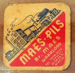 Keywords: Musée Européen de la Bière, Beer coaster pic-156.JPG Maes-Pils Photographed through glass own 2012-08-16 16 49 33 AlfvanBeem CC-zero Trademarked Musée Européen de la Bière Nostalgia by Alf van Beem Beermats Maes beer