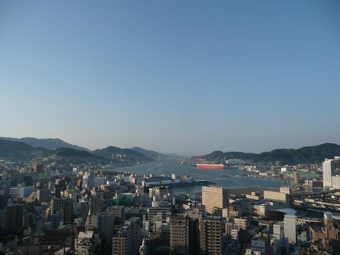 Keywords: Nagasaki city.JPG ja 高台より長崎港内を 自身で撮影 上 ジョー 2010-11-04 Port of Nagasaki Cityscapes of Nagasaki