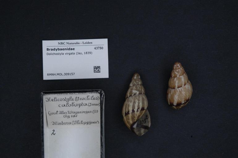 Keywords: Naturalis Biodiversity Center - RMNH.MOL.309157 - Dolichostyla virgata (Jay, 1839) - Bradybaenidae - Mollusc shell.jpeg artwork Dimensions artwork Document type Bradybaenidae Dolichostyla Individual count Infraspecific epithet Infraspecific rank Institution Naturalis Kind of unit artwork Kind of unit specimen shell Life stage Medium artwork Nomenclatural code Source institute Rijksmuseum van Natuurlijke Historie Leiden Scale the width of the text on the species/QR-code label is 38 mm Occurrence ID page Other fields Other versions artwork Permission license Naturalis donation CC-0 Mollusca Publication location Scientific name Dolichostyla virgata Jay 1839 Scientific name authorship Jay 1839 Source url http //bioportal naturalis nl Specific epithet virgata State or province Subject keywords artwork Subject keywords publication Title artwork Title publication Type status Uploaded with GWToolset Naturalis_Biodiversity_Center_-_RMNH MOL 309157_-_Dolichostyla_virgata_ Jay _1839 _-_Bradybaenidae_-_Mollusc_shell http //medialib naturalis nl/file/id/RMNH MOL 309157/format/large Media donated by Naturalis Biodiversity Center Molluscs at Naturalis from the Rijksmuseum van Natuurlijke Historie Dolichostyla virgata Dolichostyla |