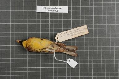 Keywords: Naturalis Biodiversity Center - RMNH.AVES.149121 2 - Emberiza aureola ornata Shulpin, 1928 - Emberizidae - bird skin specimen.jpeg artwork Dimensions artwork Document type Emberizidae Emberiza Individual count 1 Infraspecific epithet ornata Infraspecific rank Institution Naturalis Kind of unit artwork Kind of unit specimen skin Life stage juvenile Kamschatka Medium artwork Nomenclatural code Age remark on label jeune mâle on label 2 cy GK Occurrence ID page Other fields Other versions artwork Permission license Naturalis donation CC-0 Publication location Scientific name Emberiza aureola ornata Shulpin 1928 Scientific name authorship Shulpin 1928 male Source url http //bioportal naturalis nl Specific epithet aureola State or province Subject keywords artwork Subject keywords publication Title artwork Title publication Type status Uploaded with GWToolset Naturalis_Biodiversity_Center_-_RMNH AVES 149121_2_-_Emberiza_aureola_ornata_Shulpin _1928_-_Emberizidae_-_bird_skin_specimen http //medialib naturalis nl/file/id/RMNH AVES 149121_2/format/large Media donated by Naturalis Biodiversity Center Songbird specimens at Naturalis Biodiversity Center Emberiza Emberiza aureola |