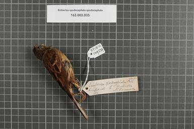 Keywords: Naturalis Biodiversity Center - RMNH.AVES.149239 1 - Emberiza spodocephala spodocephala Pallas, 1776 - Emberizidae - bird skin specimen.jpeg artwork Dimensions artwork Document type Emberizidae Emberiza Individual count 1 Infraspecific epithet spodocephala Infraspecific rank Institution Naturalis Kind of unit artwork Kind of unit specimen skin Life stage N Formosa Medium artwork Nomenclatural code Sex remark on label female whipped out male GK Occurrence ID page Other fields Other versions artwork Permission license Naturalis donation CC-0 Publication location Scientific name Emberiza spodocephala spodocephala Pallas 1776 Scientific name authorship Pallas 1776 female Source url http //bioportal naturalis nl Specific epithet spodocephala State or province N Formosa Subject keywords artwork Subject keywords publication Title artwork Title publication Type status Uploaded with GWToolset Naturalis_Biodiversity_Center_-_RMNH AVES 149239_1_-_Emberiza_spodocephala_spodocephala_Pallas _1776_-_Emberizidae_-_bird_skin_specimen http //medialib naturalis nl/file/id/RMNH AVES 149239_1/format/large Media donated by Naturalis Biodiversity Center Songbird specimens at Naturalis Biodiversity Center Emberiza Emberiza spodocephala |