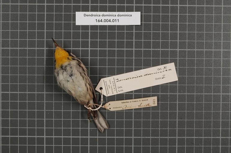 Keywords: Naturalis Biodiversity Center - RMNH.AVES.8888 2 - Dendroica dominica dominica (Linnaeus, 1766) - Parulidae - bird skin specimen.jpeg artwork Dimensions artwork Document type Parulidae Dendroica Individual count 1 Infraspecific epithet dominica Infraspecific rank Institution Naturalis Kind of unit artwork Kind of unit specimen skin Life stage Fla Gainesville Medium artwork Nomenclatural code Occurrence ID page Other fields Other versions artwork Permission license Naturalis donation CC-0 Publication location Scientific name Dendroica dominica dominica Linnaeus 1766 Scientific name authorship Linnaeus 1766 male Source url http //bioportal naturalis nl Specific epithet dominica State or province Fla Subject keywords artwork Subject keywords publication Title artwork Title publication Type status Uploaded with GWToolset Naturalis_Biodiversity_Center_-_RMNH AVES 8888_2_-_Dendroica_dominica_dominica_ Linnaeus _1766 _-_Parulidae_-_bird_skin_specimen http //medialib naturalis nl/file/id/RMNH AVES 8888_2/format/large Media donated by Naturalis Biodiversity Center Songbird specimens at Naturalis Biodiversity Center Setophaga dominica museum specimens |