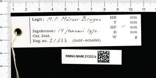 Keywords: Naturalis Biodiversity Center - RMNH.MAM.21333.b reg - Hipposideros bicolor - skin.jpeg artwork Dimensions artwork Document type Hipposideros Individual count 1 Infraspecific epithet Infraspecific rank Institution Naturalis Kind of unit artwork Kind of unit specimen skin Life stage Nabij vliegveld van Keshod Zuid Gujarat India Medium artwork Nomenclatural code Occurrence ID page Other fields Other versions artwork Permission license Naturalis donation CC-0 Publication location Scientific name Hipposideros bicolor Scientific name authorship Source url http //bioportal naturalis nl Specific epithet bicolor State or province Subject keywords artwork Subject keywords publication Title artwork Title publication Type status Uploaded with GWToolset Naturalis_Biodiversity_Center_-_RMNH MAM 21333 b_reg_-_Hipposideros_bicolor_-_skin http //medialib naturalis nl/file/id/RMNH MAM 21333 b_reg/format/large Media donated by Naturalis Biodiversity Center Mammals at Naturalis from the Rijksmuseum van Natuurlijke Historie Hipposideros bicolor Hipposideros |