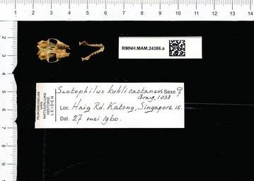 Keywords: Naturalis Biodiversity Center - RMNH.MAM.24386.a pal - Scotophilus kuhlii castaneus - skull.jpeg artwork Dimensions artwork Document type Scotophilus Individual count 1 Infraspecific epithet castaneus Infraspecific rank Institution Naturalis Kind of unit artwork Kind of unit specimen skull Life stage Haig Rd Katong Singapore 15 Medium artwork Nomenclatural code Occurrence ID page Other fields Other versions artwork Permission license Naturalis donation CC-0 Publication location Scientific name Scotophilus kuhlii castaneus Scientific name authorship female Source url http //bioportal naturalis nl Specific epithet kuhlii State or province Subject keywords artwork Subject keywords publication Title artwork Title publication Type status Uploaded with GWToolset Naturalis_Biodiversity_Center_-_RMNH MAM 24386 a_pal_-_Scotophilus_kuhlii_castaneus_-_skull http //medialib naturalis nl/file/id/RMNH MAM 24386 a_pal/format/large Media donated by Naturalis Biodiversity Center Mammals at Naturalis from the Rijksmuseum van Natuurlijke Historie Scotophilus kuhlii |