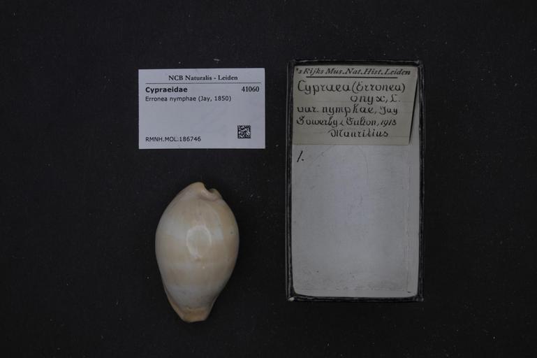 Keywords: Naturalis Biodiversity Center - RMNH.MOL.186746 - Erronea nymphae (Jay, 1850) - Cypraeidae - Mollusc shell.jpeg artwork Dimensions artwork Document type Cypraeidae subfamily Cypraeovulinae Erronea Individual count Infraspecific epithet Infraspecific rank Institution Naturalis Kind of unit artwork Kind of unit specimen shell Life stage Medium artwork Nomenclatural code Source institute Rijksmuseum van Natuurlijke Historie Leiden Scale the width of the text on the species/QR-code label is 38 mm Occurrence ID page Other fields Other versions artwork Permission license Naturalis donation CC-0 Mollusca Publication location Scientific name Erronea nymphae Jay 1850 Scientific name authorship Jay 1850 Source url http //bioportal naturalis nl Specific epithet nymphae State or province Subject keywords artwork Subject keywords publication Title artwork Title publication Type status Uploaded with GWToolset Naturalis_Biodiversity_Center_-_RMNH MOL 186746_-_Erronea_nymphae_ Jay _1850 _-_Cypraeidae_-_Mollusc_shell http //medialib naturalis nl/file/id/RMNH MOL 186746/format/large Media donated by Naturalis Biodiversity Center Molluscs at Naturalis from the Rijksmuseum van Natuurlijke Historie Erronea nymphae Erronea |
