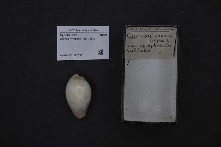 Keywords: Naturalis Biodiversity Center - RMNH.MOL.186747 - Erronea nymphae (Jay, 1850) - Cypraeidae - Mollusc shell.jpeg artwork Dimensions artwork Document type Cypraeidae subfamily Cypraeovulinae Erronea Individual count Infraspecific epithet Infraspecific rank Institution Naturalis Kind of unit artwork Kind of unit specimen shell Life stage Medium artwork Nomenclatural code Source institute Rijksmuseum van Natuurlijke Historie Leiden Scale the width of the text on the species/QR-code label is 38 mm Occurrence ID page Other fields Other versions artwork Permission license Naturalis donation CC-0 Mollusca Publication location Scientific name Erronea nymphae Jay 1850 Scientific name authorship Jay 1850 Source url http //bioportal naturalis nl Specific epithet nymphae State or province Subject keywords artwork Subject keywords publication Title artwork Title publication Type status Uploaded with GWToolset Naturalis_Biodiversity_Center_-_RMNH MOL 186747_-_Erronea_nymphae_ Jay _1850 _-_Cypraeidae_-_Mollusc_shell http //medialib naturalis nl/file/id/RMNH MOL 186747/format/large Media donated by Naturalis Biodiversity Center Molluscs at Naturalis from the Rijksmuseum van Natuurlijke Historie Erronea nymphae Erronea |