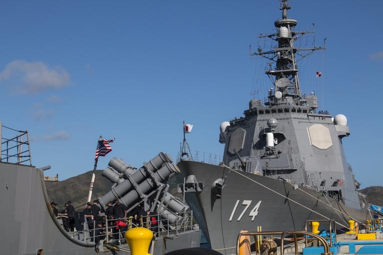 Keywords: Naval Base Guam hosts US-Japanese ships for Multi-sail 2016 160304-N-OG363-029.jpg en APRA HARBOR Guam March 4 2016 The Japanese destroyer JS Kirishima DD-174 sits at Tango Wharf alongside the U S guided missile cruiser USS Chancellorsville CG-62 in Apra Harbor U S Naval Base Guam for a short in-port period prior to the bilateral exercise Multi-Sail 2016 MS-16 Ten total naval surface combatants assigned to the U S and Japanese navies arrived in-port to Apra Harbor increasing the total number of visiting and home-ported vessels at the base to 20 and marked the largest contingent of vessels in Apra Harbor in more than 30 years Released/Jeff Landis Major USMC Ret Director of Public Affairs/Communications Naval Base Guam <br>Unit U S Naval Base Guam 2016-03-04 Jeffrey Landis https //www dvidshub net/image/2465669/naval-base-guam-hosts-us-japanese-ships-multi-sail-2016 160304-N-OG363-029 2016-03-16 03 21 APRA HARBOR GU PD-USGov-Military-Navy Multi-Sail 2016 Images from DoD uploaded by FĂŚ |