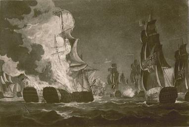 Keywords: Navio Real Carlos y San Hermenegildo en llamas.jpg en July 12th 1801 the ships of line Real Carlos and San Hermenegildo explot es 12 de Julio de 1801 el navío Real Carlos y el San Hermenegildo explotan al intercambiarse el fuego de sus baterias National Maritime Museum of London Creator Thomas Whitcombe 1816-03-01 PD-old-100 Prints in the National Maritime Museum London Naval battles involving Spain 1801 events Ships of the line of Spain Spain in the 1800s Real Carlos ship 1787 |
