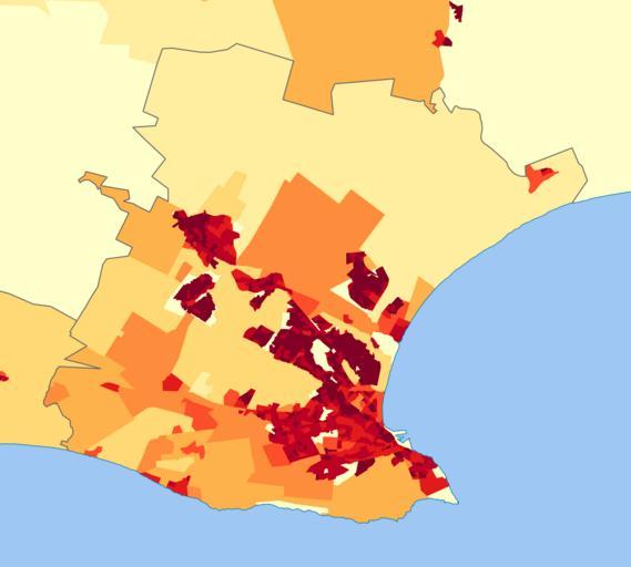 Keywords: Nelson Mandela Bay 2011 population density map.svg ffffcc <1 inhabitant/km² ffeda0 1 “3 inhabitants/km² fed976 3 “10 inhabitants/km² feb24c 10 “30 inhabitants/km² fd8d3c 30 “100 inhabitants/km² fc4e2a 100 “300 inhabitants/km² e31a1c 300 “1000 inhabitants/km² bc0026 1000 “3000 inhabitants/km² 800026 >3000 inhabitants/km² Statistics South Africa's Census 2011 is the source of the basic population data The map results from my own processing of the data Htonl 2013-10-13 http //beta2 statssa gov za/ page_id 425 The following license applies to the population data on which the map is based the user acknowledges Stats SA as the source of the basic data wherever they process apply utilise publish or distribute the data and also that they specify that the relevant application and analysis where applicable result from their own processing of the data The following tag applies to the map itself Demographic maps of South Africa Maps of cities in South Africa Port Elizabeth Nelson Mandela Bay Metropolitan Municipality |